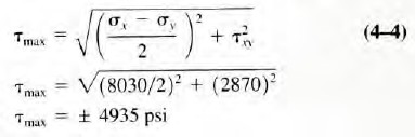 Now, the maximum shear stress element can be defined, using Equations (4-4) through (4-6):