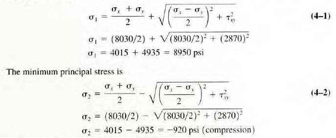 We can now compute the principal stresses on the element, using Equations (4-1) through (4-3). The maximum principal stress is